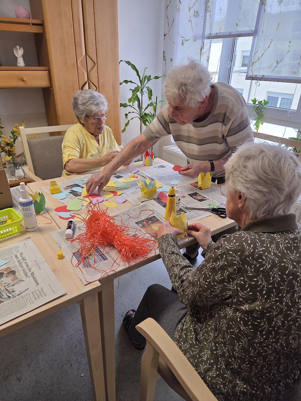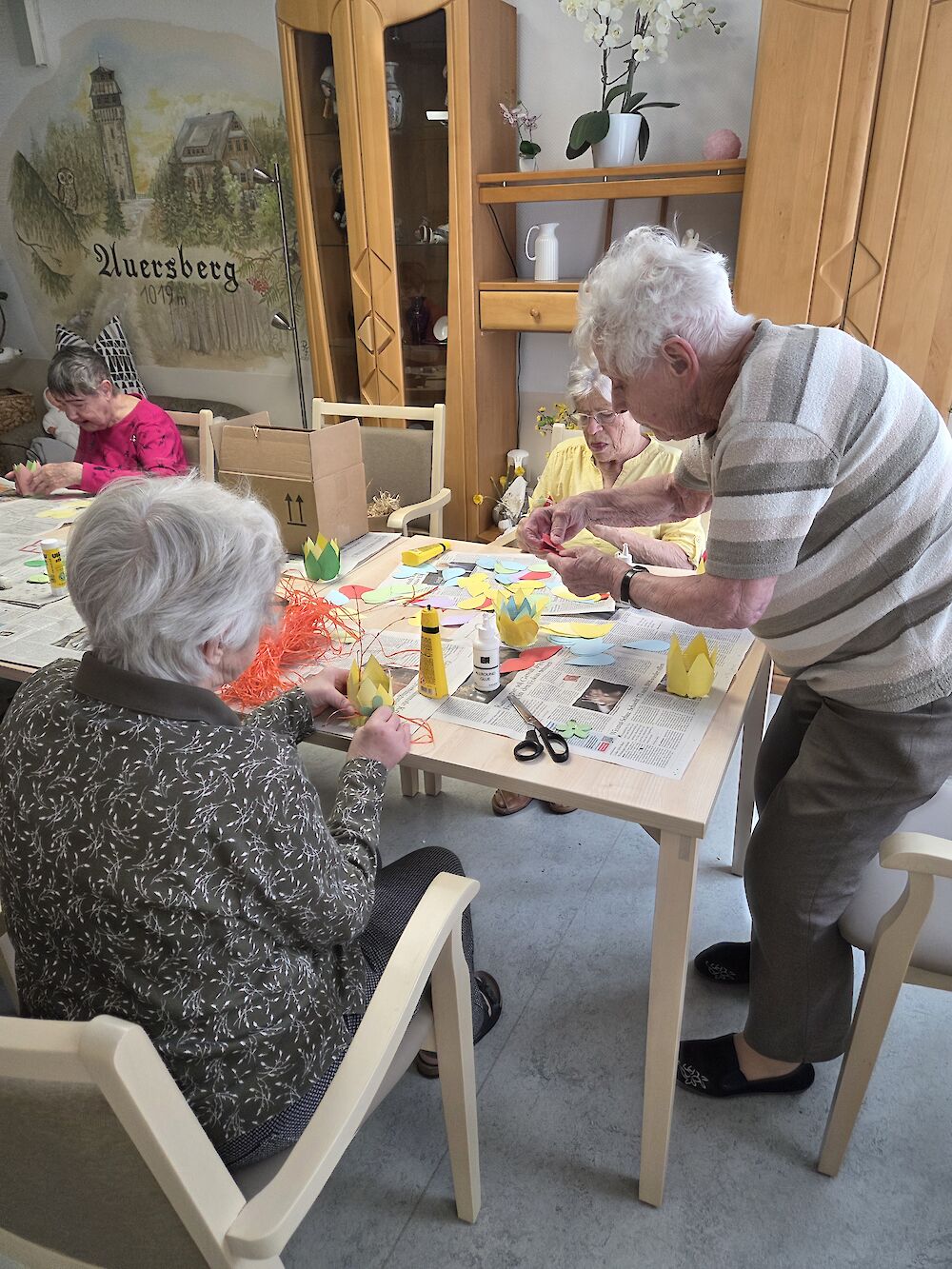 In den vergangenen Wochen wurde bei uns gebastelt, geklebt und dekoriert. Gemeinsam haben die Bewohnerinnen und Bewohner Frühlingsdeko gestaltet, um unser Haus Schritt für Schritt in den „Sonnenmodus“ zu versetzen.